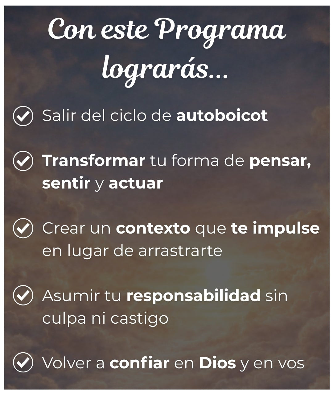 No. El programa está diseñado para toda persona que busque un cambio. Solo precisás apertura, honestidad y compromiso con tu proceso.
